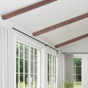 The Ornamental faux beam collection easily transforms your residential or commercial space. Choose from a variety of different rustic and premium wood species to match your existing home decor. Install your beams in three simple steps: trim to fit, install the mounting plate, and attach the beam.