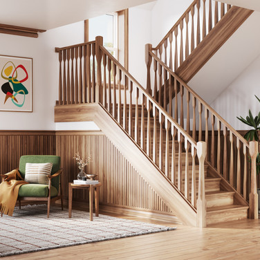 Breaking away from the details of the past, the Mid-Century Modern era embraced the beauty of shape and function. The Arvato family is a celebration of curves and angles. As a fully Integrated Family, Arvato synchronizes the architecture of the staircase with the linear flow of the room. The iconic tapered legs and slat-style balusters of the L.J. Smith stair system are perfectly complemented by Ornamental's flat-stock moulding and subtle reveals. It is cool, confident, and completely cohesive.